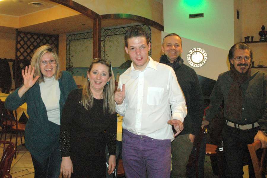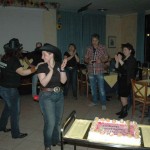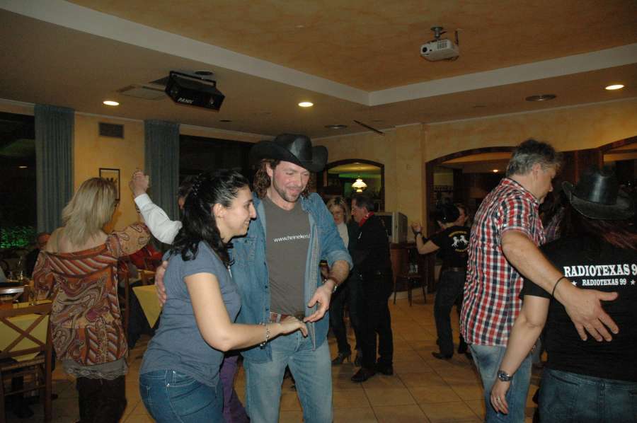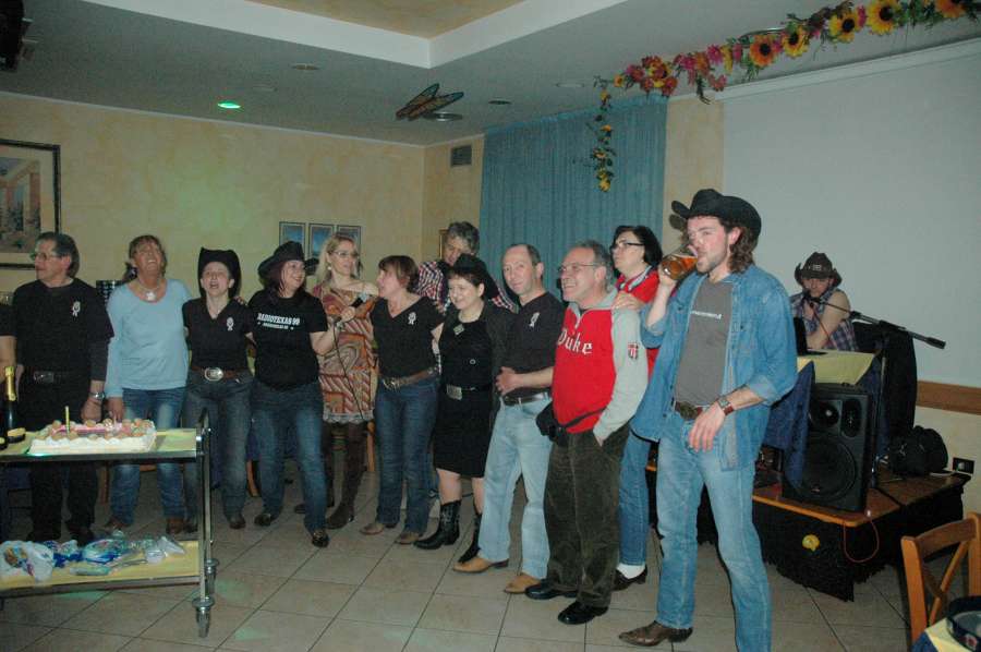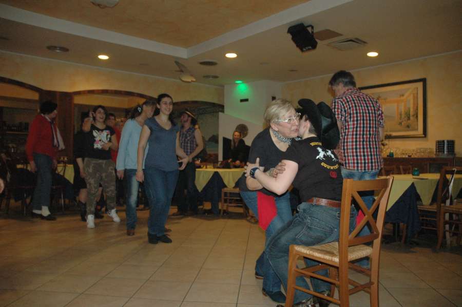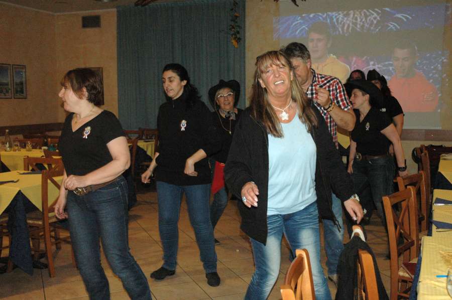 SABATO 23 MARZO 2013 RISTORANTE-PIZZERIA “LADY”PRAGATTO DI CRESPELLANO(BO)Bellissima serata al Ristorante-Pizzeria “LADY” a Pragatto di Crespellano(BO)per gli amici ballerini del gruppo di ballo “Monteveglio Country”in compagnia di Mirco Cattani.Dopo un’ottima cena tra pizza,pesce e tante altre specialita’ la musica country inizia a battere il suo ritmo tanto da coinvolgere tutto il pubblico presente in sala.La serata e’ arricchita dalla presenza di Beppe Maniglia,e chi frequenta la bellissima citta’ di Bologna non puo’ non conoscerlo con la sua bellissima moto e la sua anima da centuaro, gentilissimo e simpatico…Giunge circa la mezzanotte quando le luci si spengono e tra le note di una canzone che elogia la donna nella sua complicata semplicita’ la bellissima voce di Fiorella Mannoia riempie la sala per festeggiare il compleanno a sorpresa di una cowgirl che tra gioia ed emozione si stringe a tutto il gruppo fino a quando le candeline si spengono portando con loro un bellissimo desiderio…Che dire?Grazie Grazie,loso’ e’ poco ma a volte leparole non servono quando si sono incontrati nelle varie strette di mano ochhi sinceri..Grazie amici…E come diciamo dalle nostri parti “A NOI CI PIACE FARE BARACCAAAAAAAAAAAAA…